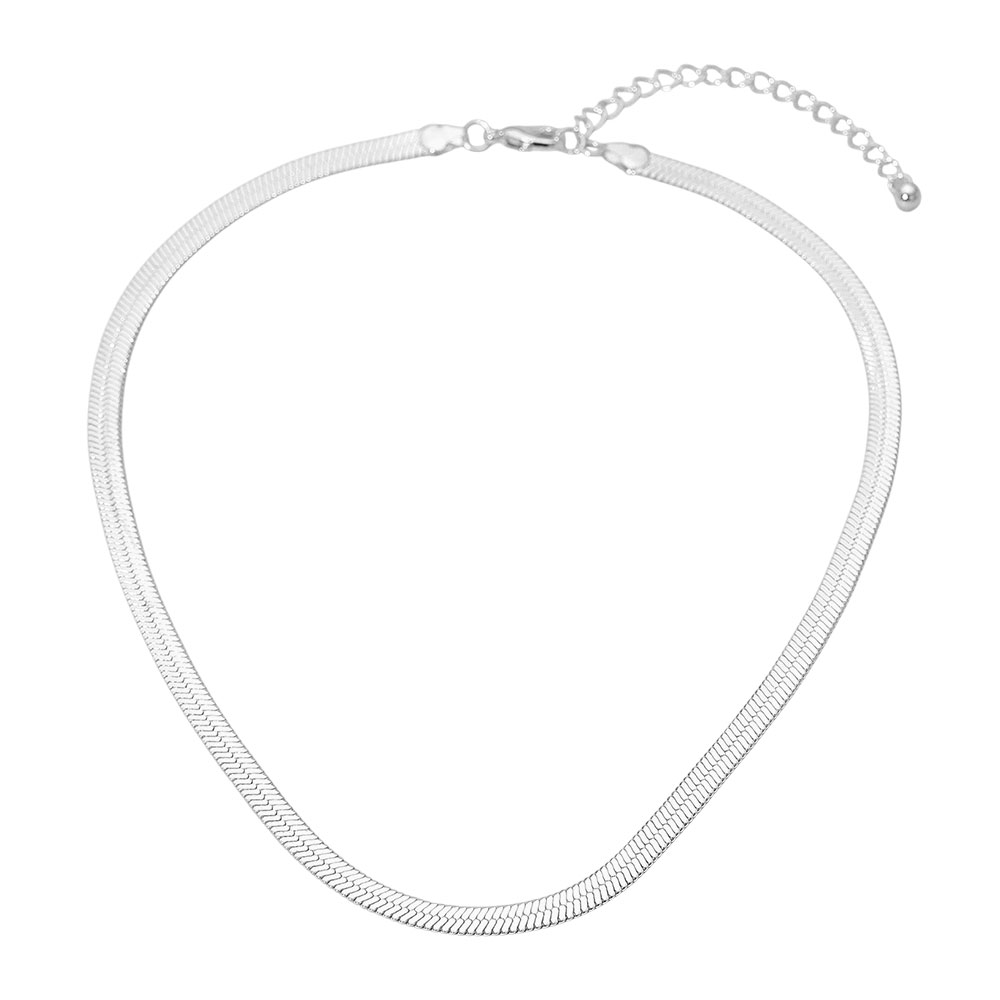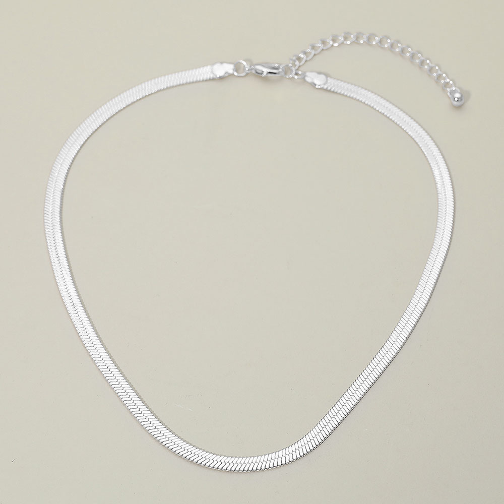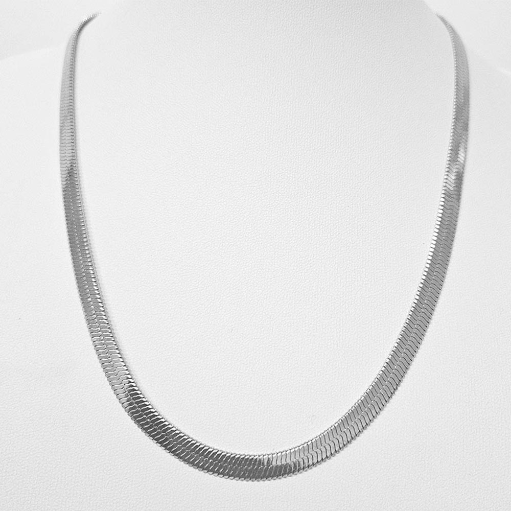 Details • Necklace Size : 19" + 3" L • Decor Size : 0.25" L • Discover effortless sophistication with this herringbone chain necklace, crafted with smooth, flat links that reflect light beautifully. Its sleek and modern design makes it the perfect versatile accessory, ideal for layering or wearing alone to elevate any outfit. • Lead and Nickel Compliant • Sterling Silver Dipped