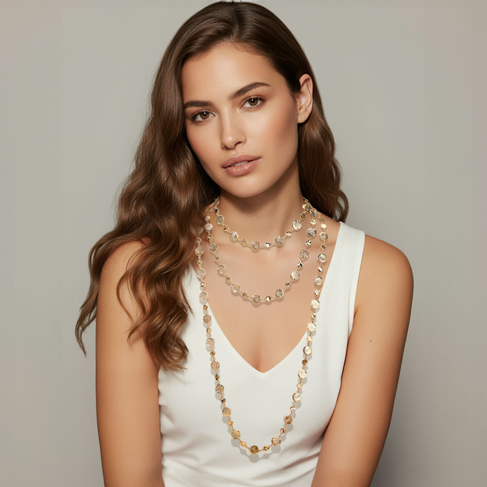 • Elevate your style with this elegant multi-layer coin charm necklace, designed to add depth and refined movement to any look. Its delicate, cascading layers create a polished statement that complements both casual and sophisticated ensembles with effortless versatility.