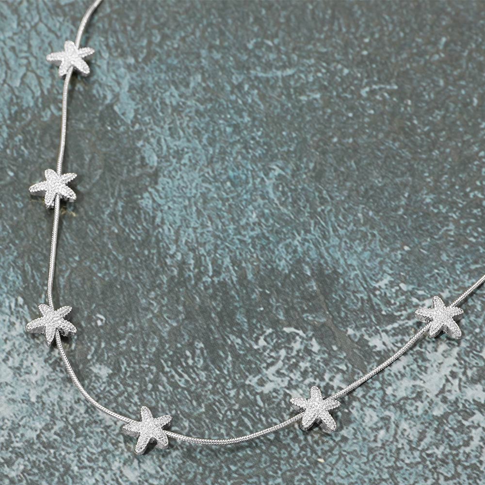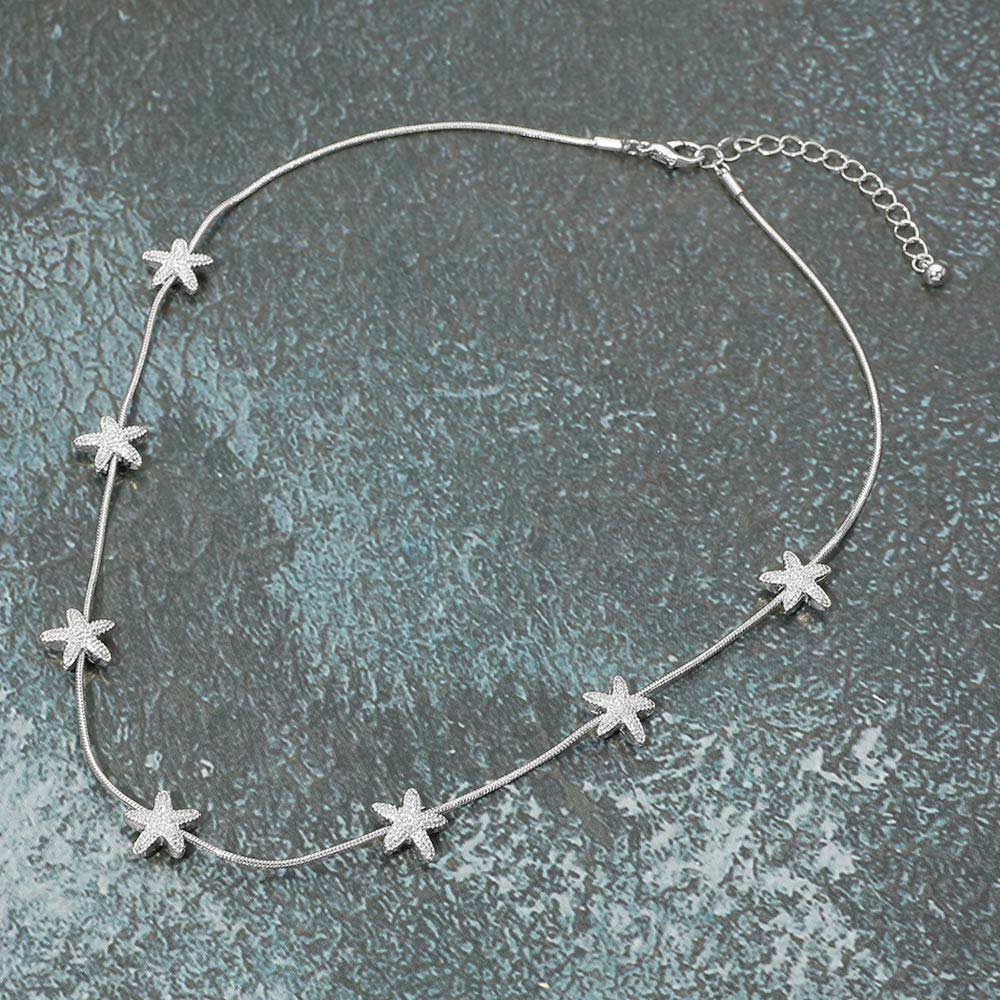 Details • Necklace Size : 17" + 2.3" L • Decor Size : 0.5" L • This starfish charm station necklace features evenly spaced star accents along a sleek chain with an adjustable length for a comfortable fit. Designed for effortless layering or wearing alone, it adds a playful yet polished touch to everyday outfits, gifting, vacation styling, and boutique jewelry collections. • Lead and Nickel Compliant