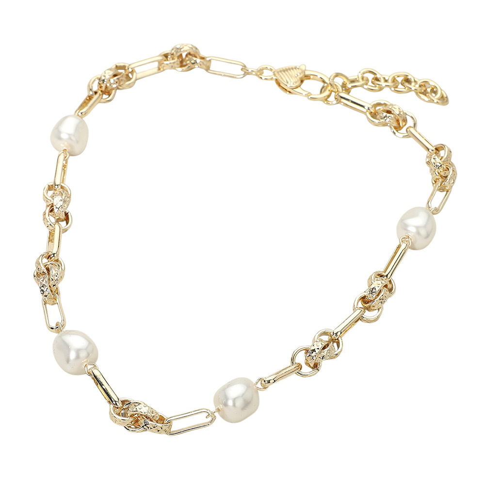 14K Gold Plated Pearl Mixed Chain Link Necklace