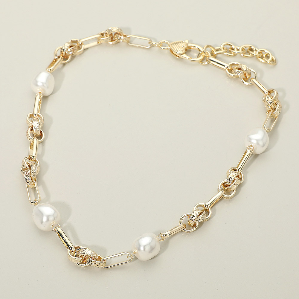 14K Gold Plated Pearl Mixed Chain Link Necklace 14K Gold Plated Pearl Mixed Chain Link Necklace 14K Gold Plated Pearl Mixed Chain Link Necklace