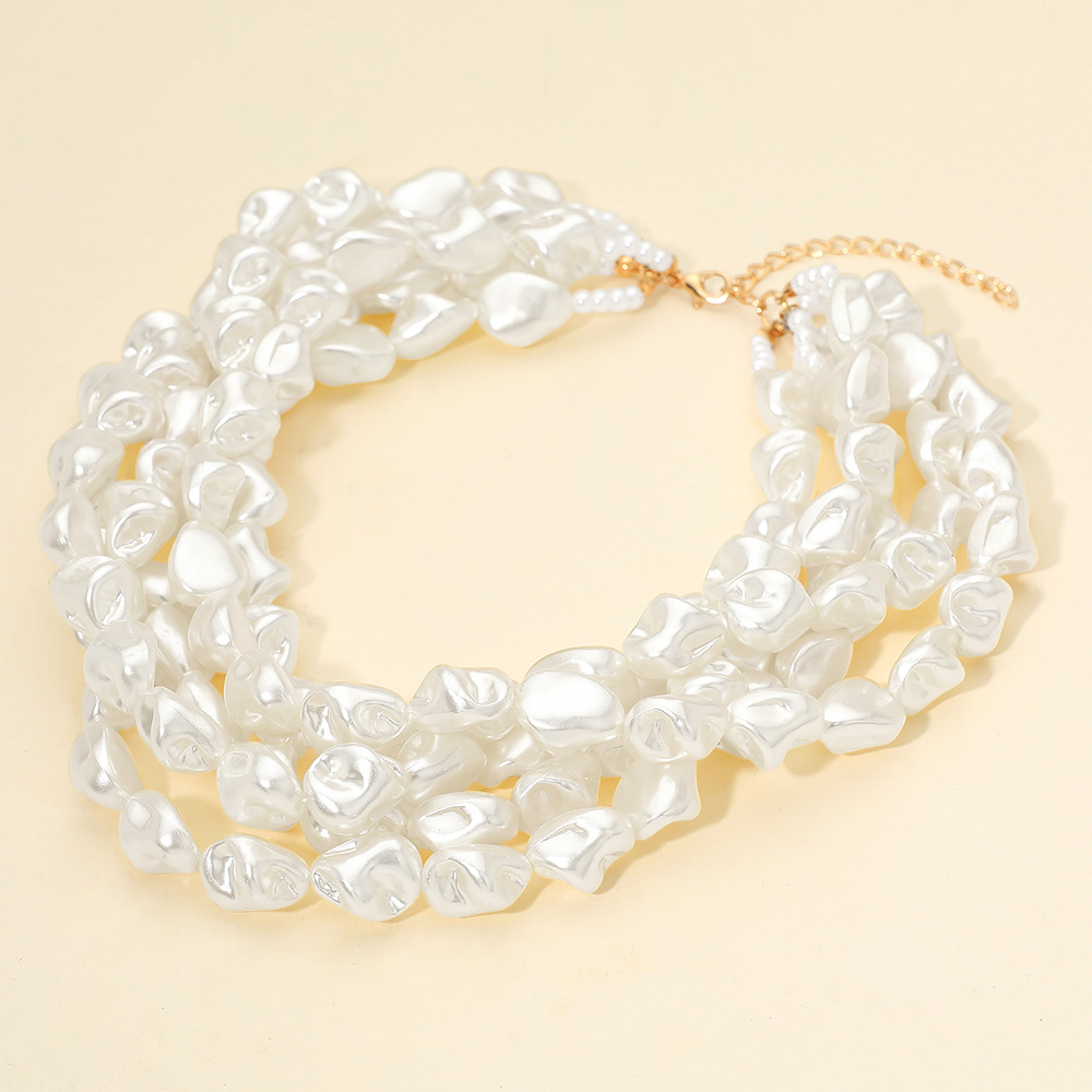 18K Gold Dipped Chunky Multi Layered Pearl Strand Necklace