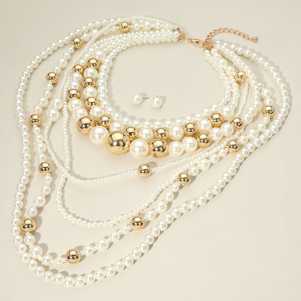 Chunky Pearl Beaded Multi Layered Statement Necklace