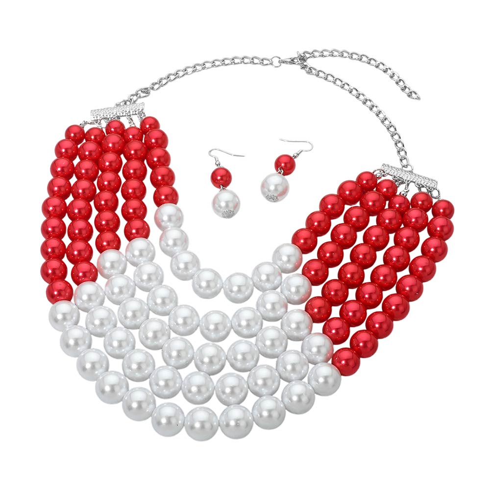Details • Necklace Size : 17.5" + 9" L • Decor Size : 4" L • Earring Size : 2.1" L • This multi-strand bead necklace and earring set delivers a layered statement look with smooth, rounded beads arranged for volume and balance. Designed to elevate dressy outfits, special events, and boutique displays, it offers coordinated styling appeal that works for gifting, formal occasions, and trend-focused accessory collections. • Lead and Nickel Compliant