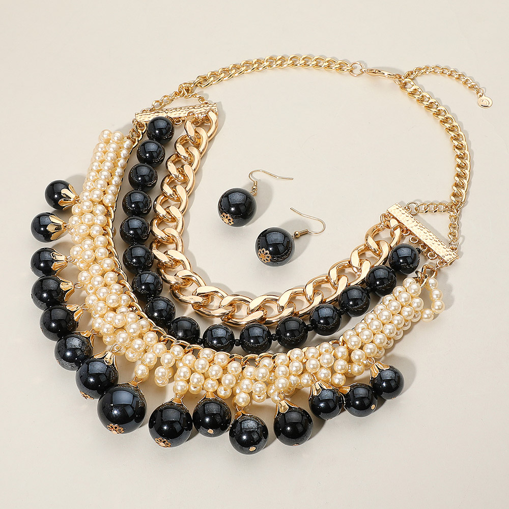 Oversized Bold Two Tone Pearl Beaded Statement Necklace