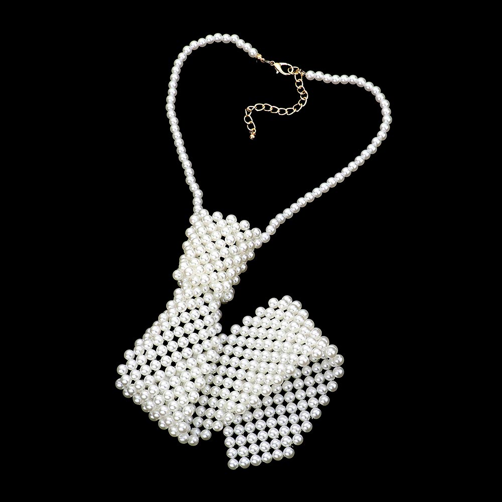 Brushed Metal Heart Cross Pearl Charm Station Chunky Necklace