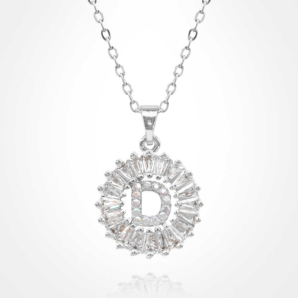 -D- Stainless Steel CZ Stone Embellished Round Initial Monogram Pendant Necklace