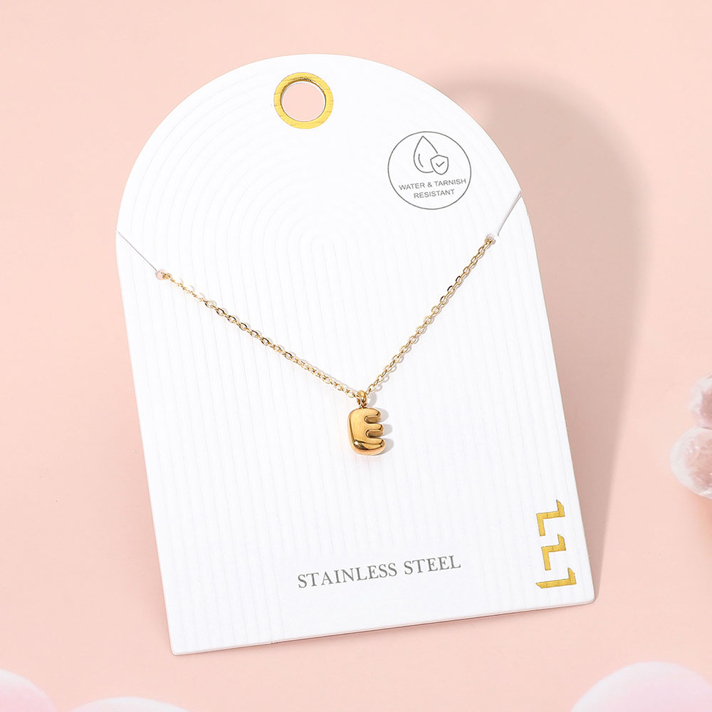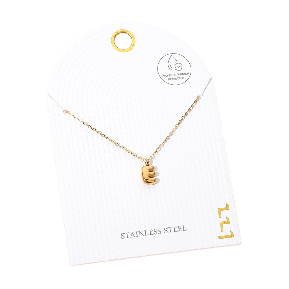 Details • Necklace Size : 18" L • Pendant Size : 0.3" L • Chic stainless steel necklace featuring a minimalist initial monogram pendant. Designed for everyday wear, this water and tarnish resistant piece adds a personal touch and effortless elegance to any outfit. • Stainless Steel