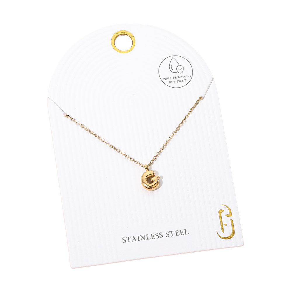 Details • Necklace Size : 18" L • Pendant Size : 0.3" L • Chic stainless steel necklace featuring a minimalist initial monogram pendant. Designed for everyday wear, this water and tarnish resistant piece adds a personal touch and effortless elegance to any outfit. • Stainless Steel