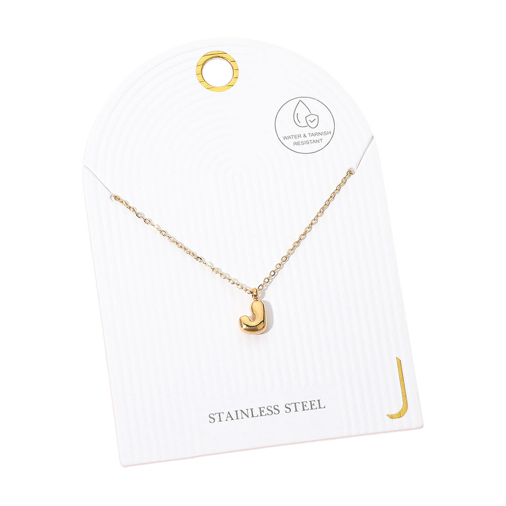 Details • Necklace Size : 18" L • Pendant Size : 0.3" L • Chic stainless steel necklace featuring a minimalist initial monogram pendant. Designed for everyday wear, this water and tarnish resistant piece adds a personal touch and effortless elegance to any outfit. • Stainless Steel