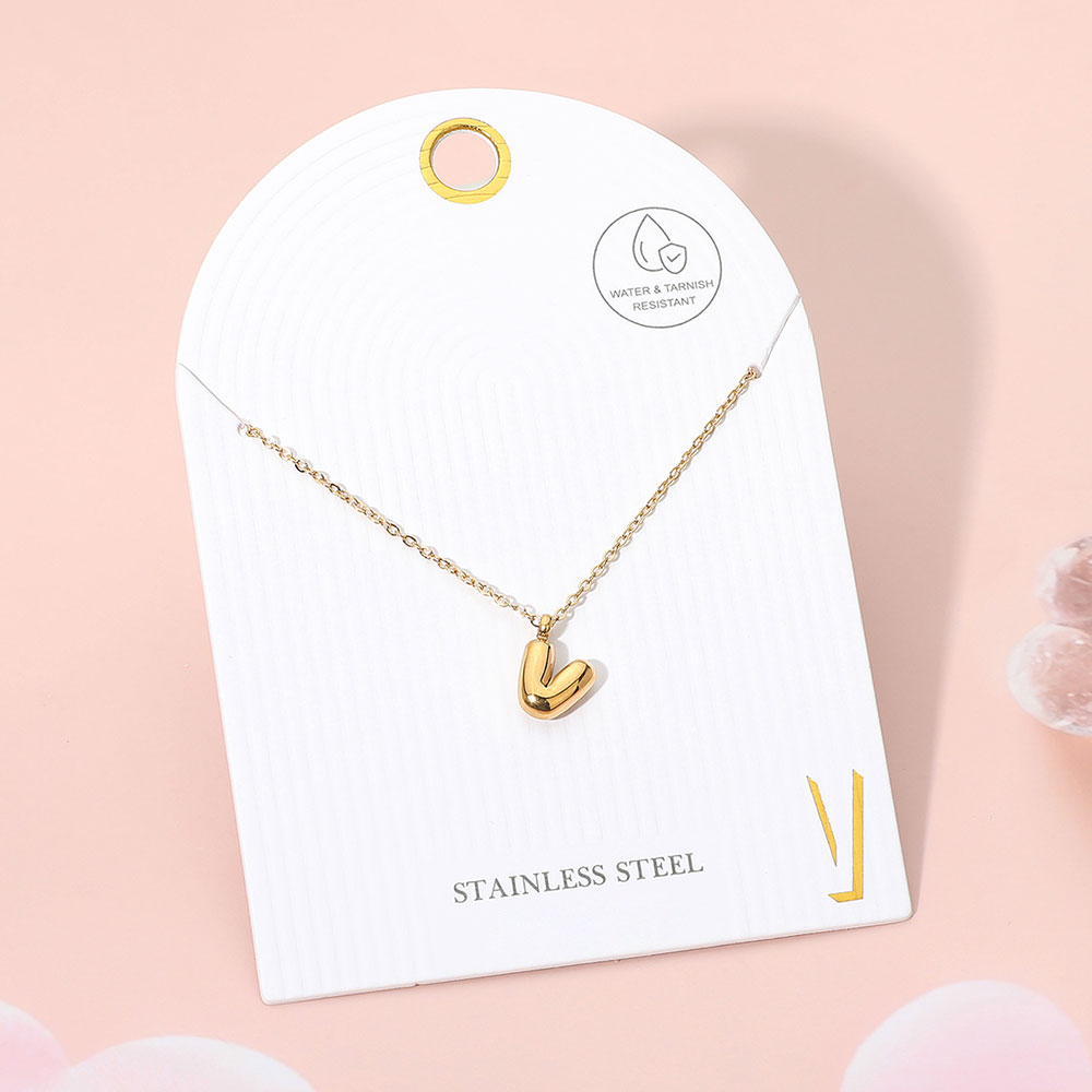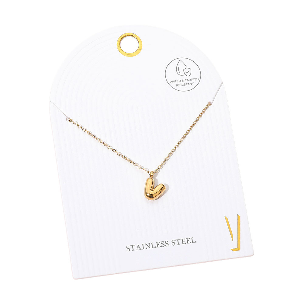 Details • Necklace Size : 18" L • Pendant Size : 0.3" L • Chic stainless steel necklace featuring a minimalist initial monogram pendant. Designed for everyday wear, this water and tarnish resistant piece adds a personal touch and effortless elegance to any outfit. • Stainless Steel