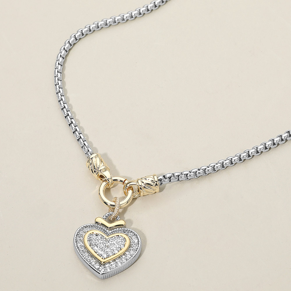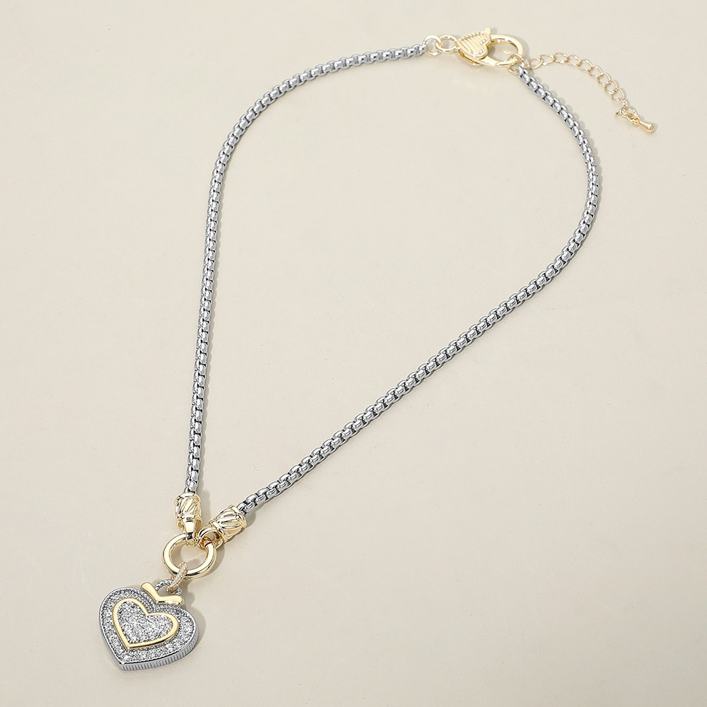 Details • Necklace Size : 17.5" + 2" L • Pendant Size : 1" X 1" • This elegant chain necklace features a layered double heart pendant with sparkling CZ accents for a refined, romantic look. Designed to elevate everyday outfits or complement special occasions, it offers timeless appeal with a modern, fashion-forward silhouette. • CZ Cubic Zirconia • Gold Dipped