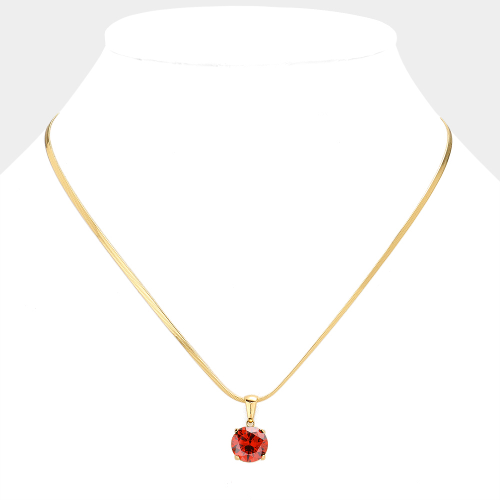 Details • Necklace Size : 16" + 2" L • Pendant Size : 0.4" X 0.75" • Elevate your look with this timeless round-cut CZ pendant necklace. The sleek stainless steel chain and faceted stone create a refined statement of elegance and strength. Perfect for both formal and casual occasions, it adds a touch of bold sophistication to any ensemble effortlessly. • Gold Dipped • CZ Cubic Zirconia • Stainless Steel