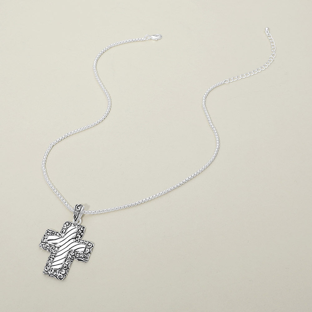 Details • Necklace Size : 18" + 3" L • Pendant Size : 1.3" X 2.2" • This cross pendant necklace features a timeless faith-inspired design with subtle detailing for everyday wear. Ideal for layering or wearing solo, it suits gifting, spiritual collections, and year-round styling. A meaningful jewelry piece for boutiques seeking symbolic accessories with lasting customer appeal. • Lead and Nickel Compliant