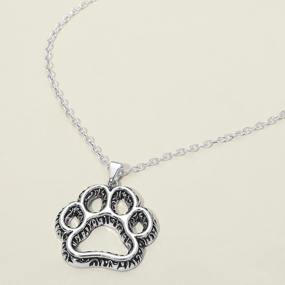 Details • Necklace Size : 20" + 3" L • Pendant Size : 1.5" X 1.75" • This paw print pendant necklace features a charming open design that adds a playful yet meaningful touch to everyday outfits. Easy to style alone or layered, it appeals to pet lovers and gift shoppers alike. A great addition for boutiques seeking symbolic, trend-friendly accessories suitable for daily wear and thoughtful gifting. • Lead and Nickel Compliant