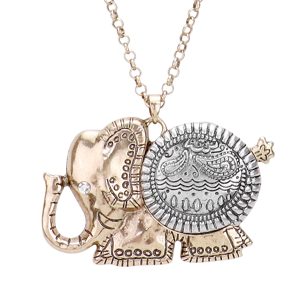Antique Pattern Elephant Pendant Necklace