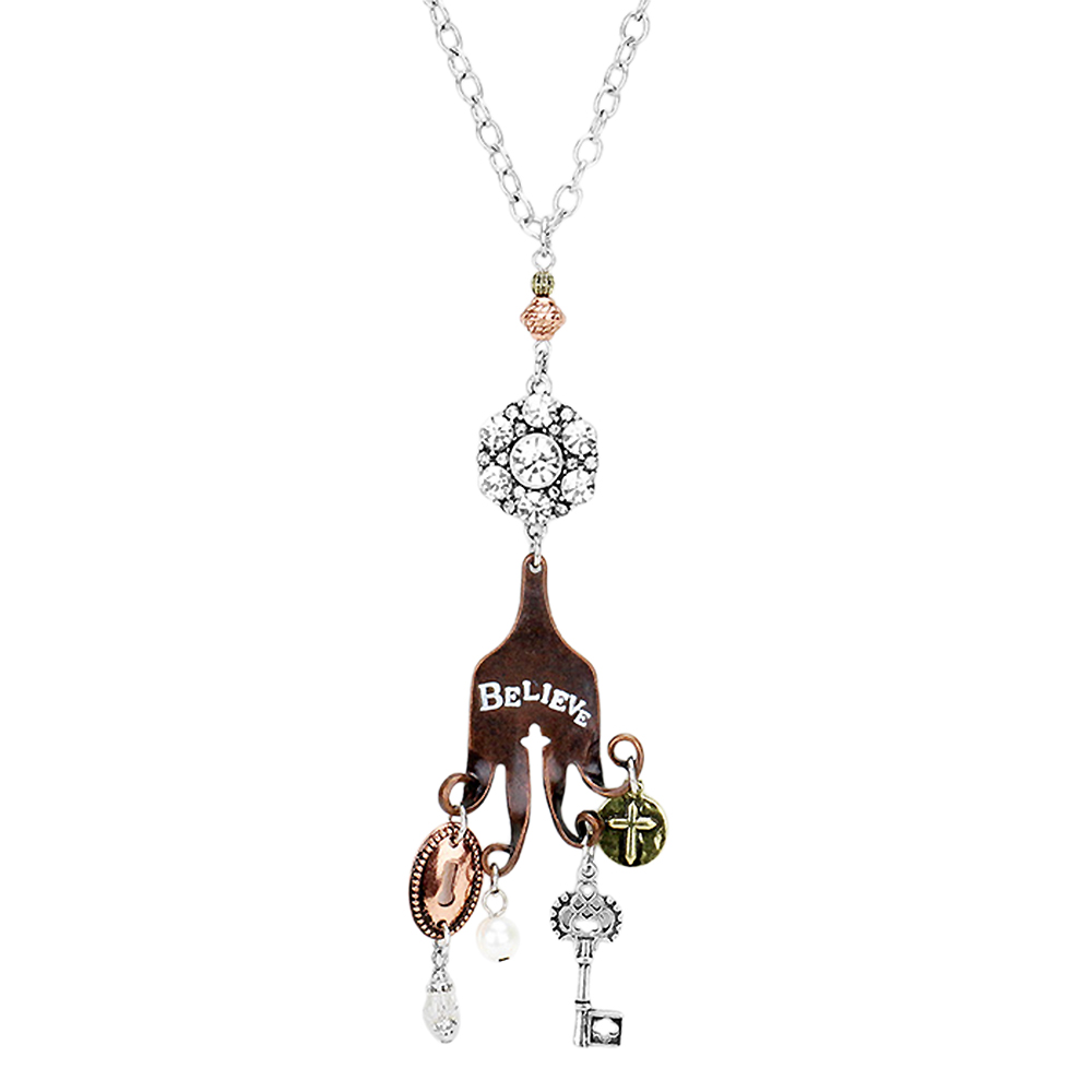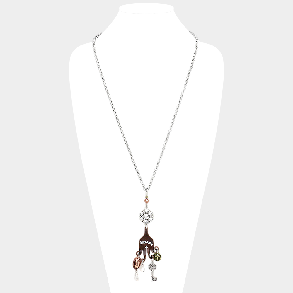 "Believe" Cross Key Lock Pearl Pendants Long Necklace