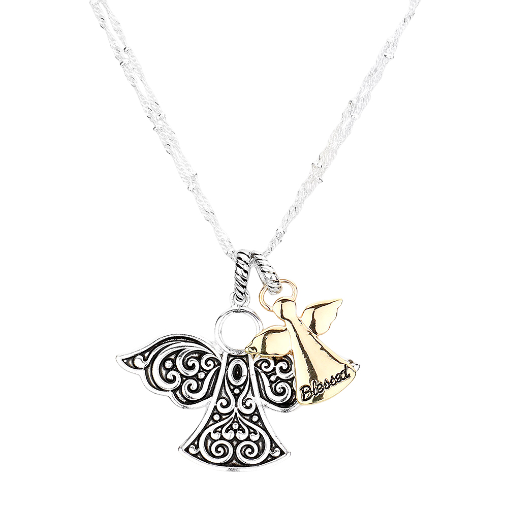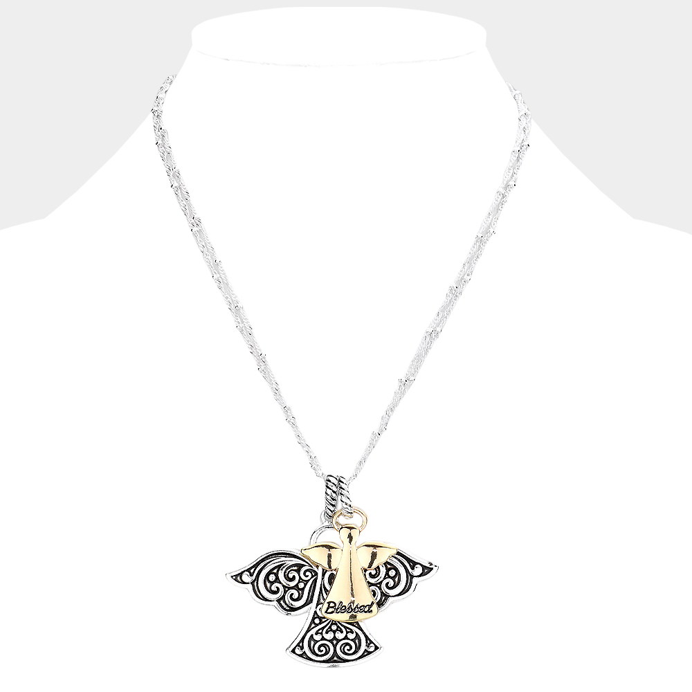 Heart Angel Coin Pearl Charm Fabric Necklace