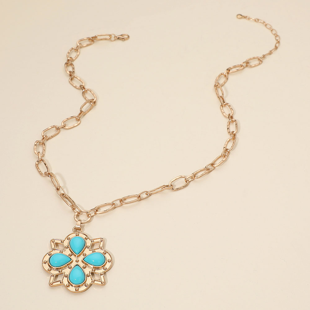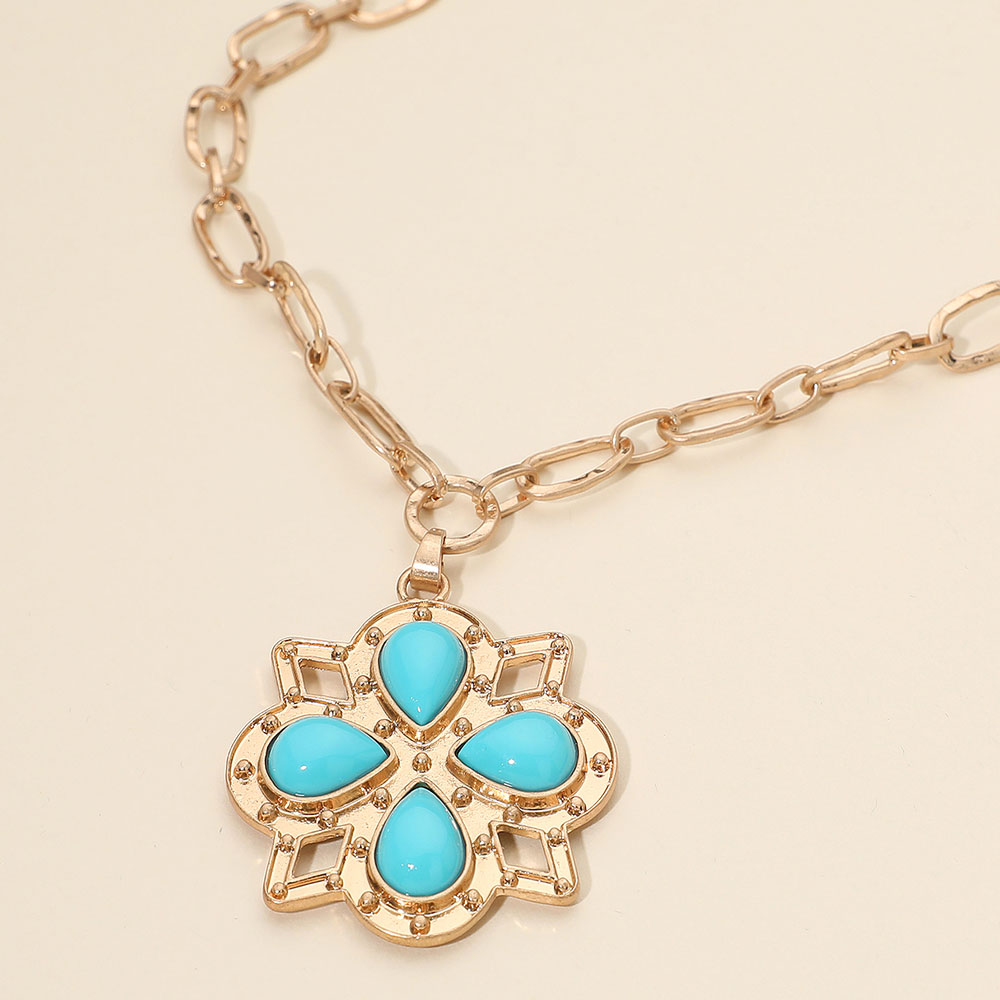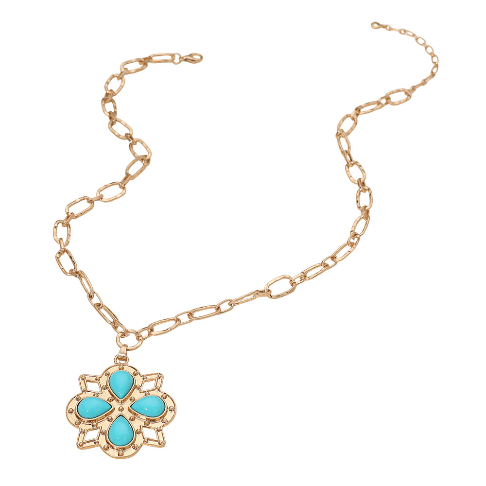 Details • Necklace Size : 21" + 3" L • Pendant Size : 1.8" X 1.8" • Charming necklace featuring a floral-shaped pendant with teardrop stone accents on a linked chain. Perfect for both casual and dressy occasions, offering a refined and graceful look. A timeless accessory that adds sophistication and feminine elegance to any outfit or jewelry collection. • Lead and Nickel Compliant