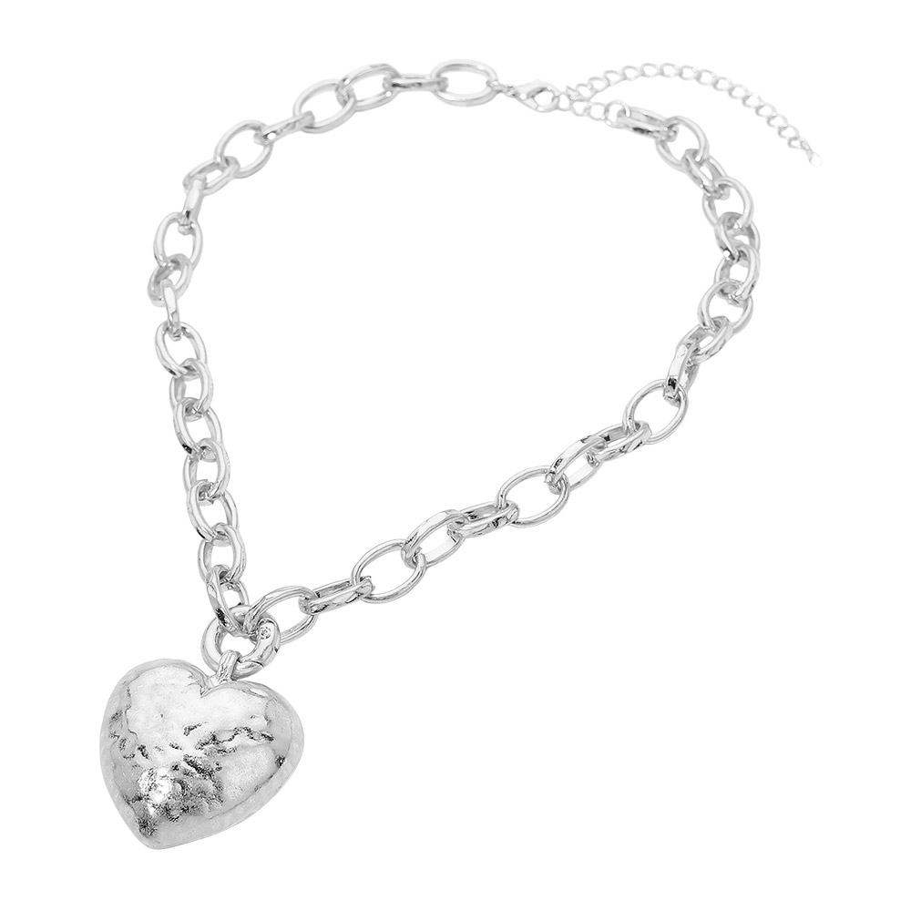• A bold, stylish necklace featuring a chunky linked chain paired with a textured heart pendant for a striking yet romantic touch. Its statement design elevates everyday looks and adds expressive charm to dressier outfits, making it a versatile standout accessory.
