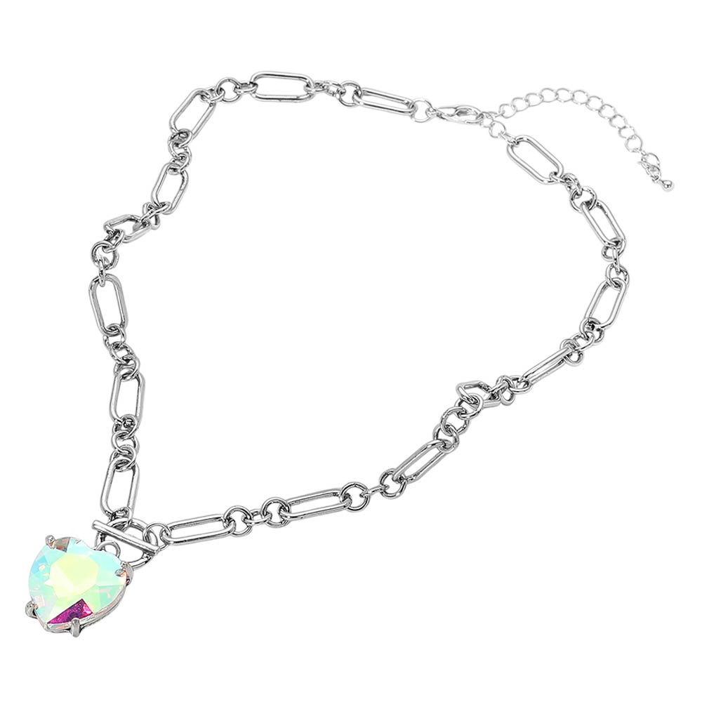 Chunky Heart Stone Cluster Toggle Pendant Necklace