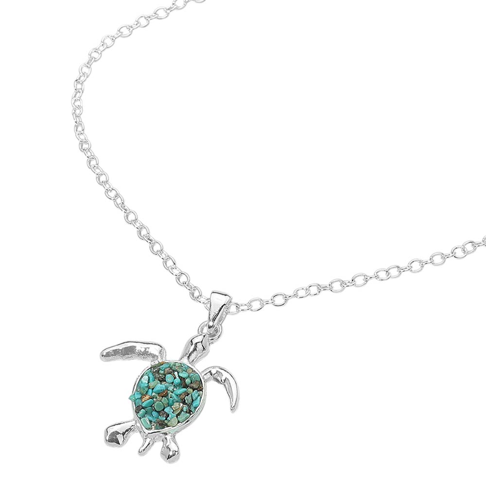 Details • Necklace Size : 18" + 3.5" L • Pendant Size : 1.25" X 1.75" • Charming sea turtle pendant necklace featuring a detailed turtle silhouette with textured inlay design on a delicate chain. Inspired by ocean themes, this necklace adds a playful yet meaningful accent to everyday outfits, vacation looks, or layered jewelry styles. A popular choice for coastal collections, gift shops, and nature-inspired accessories. • Lead and Nickel Compliant