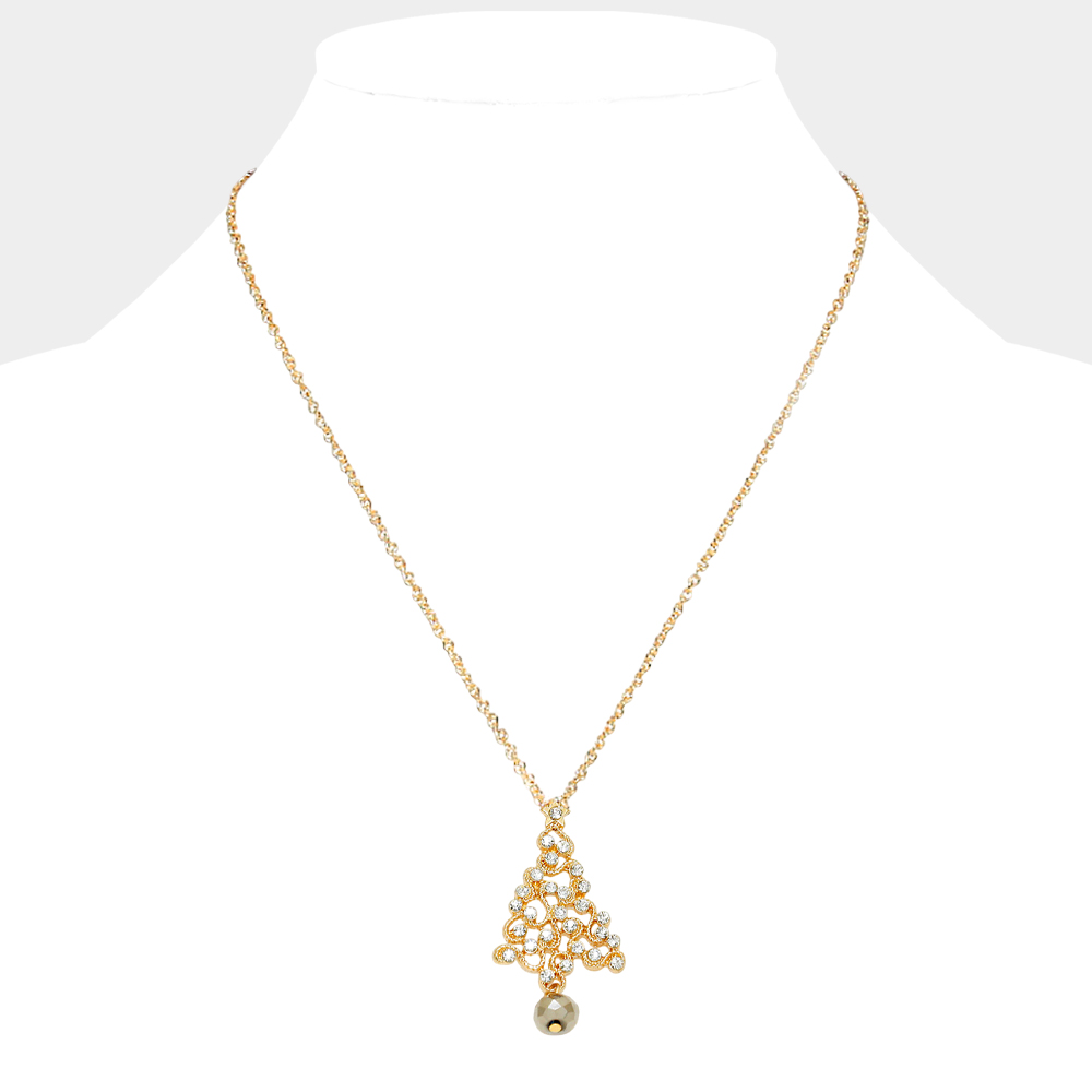Crystal Christmas Tree Pendant Necklace with Snow Flake Earrings