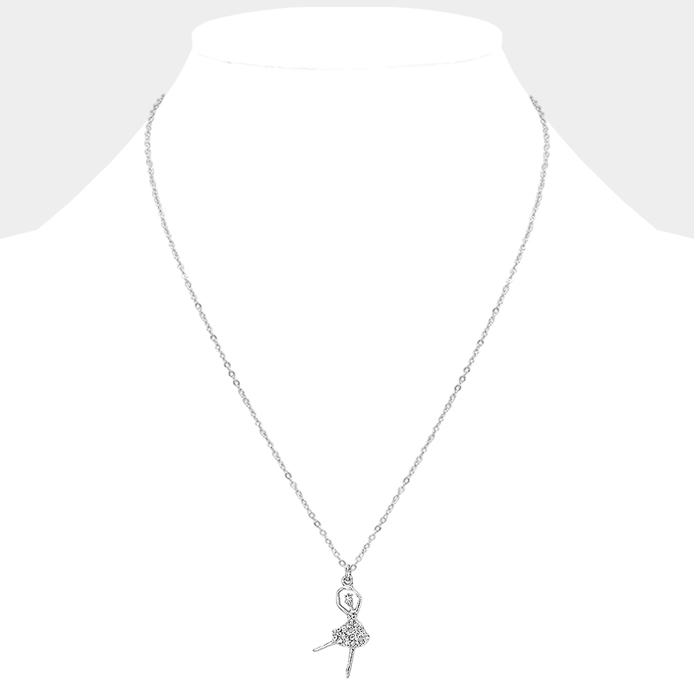 Crystal Pave Ballerina Girl Pendant Necklace