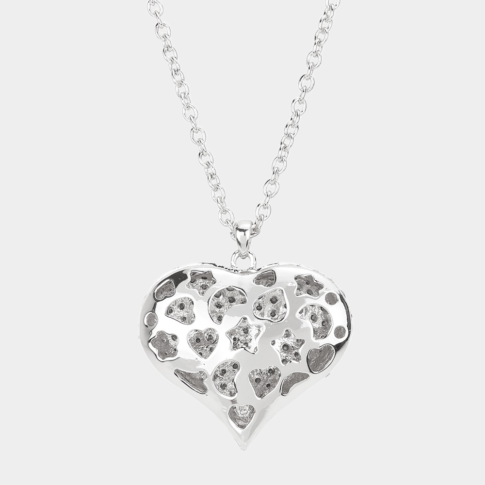 Crystal Pave Heart Pendant Long Necklace