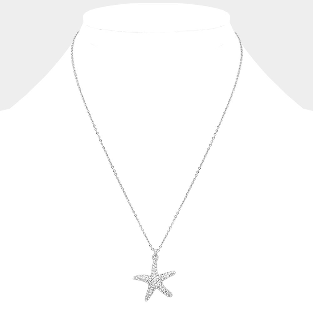 Metal Whale Tale Starfish Turtle Sun CZ Teardrop Stone Charm Pendant Necklace