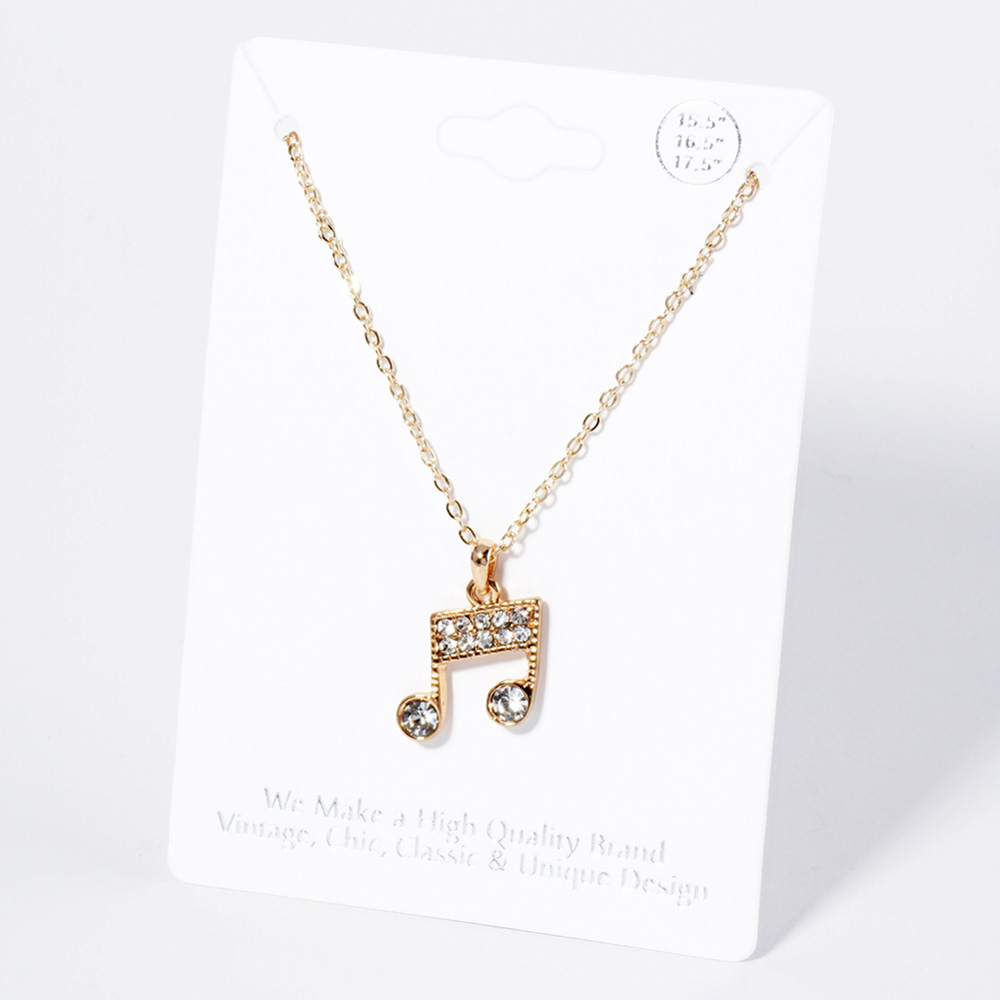 Details • Necklace Size : 15.5" + 2" L • Pendant Size : 0.6" X 0.75" • Celebrate your love for music with this elegant music note pendant necklace, designed with shimmering accents that add a touch of brilliance. A meaningful and stylish piece, perfect for musicians, music lovers, or anyone who enjoys expressive jewelry. • Lead and Nickel Compliant