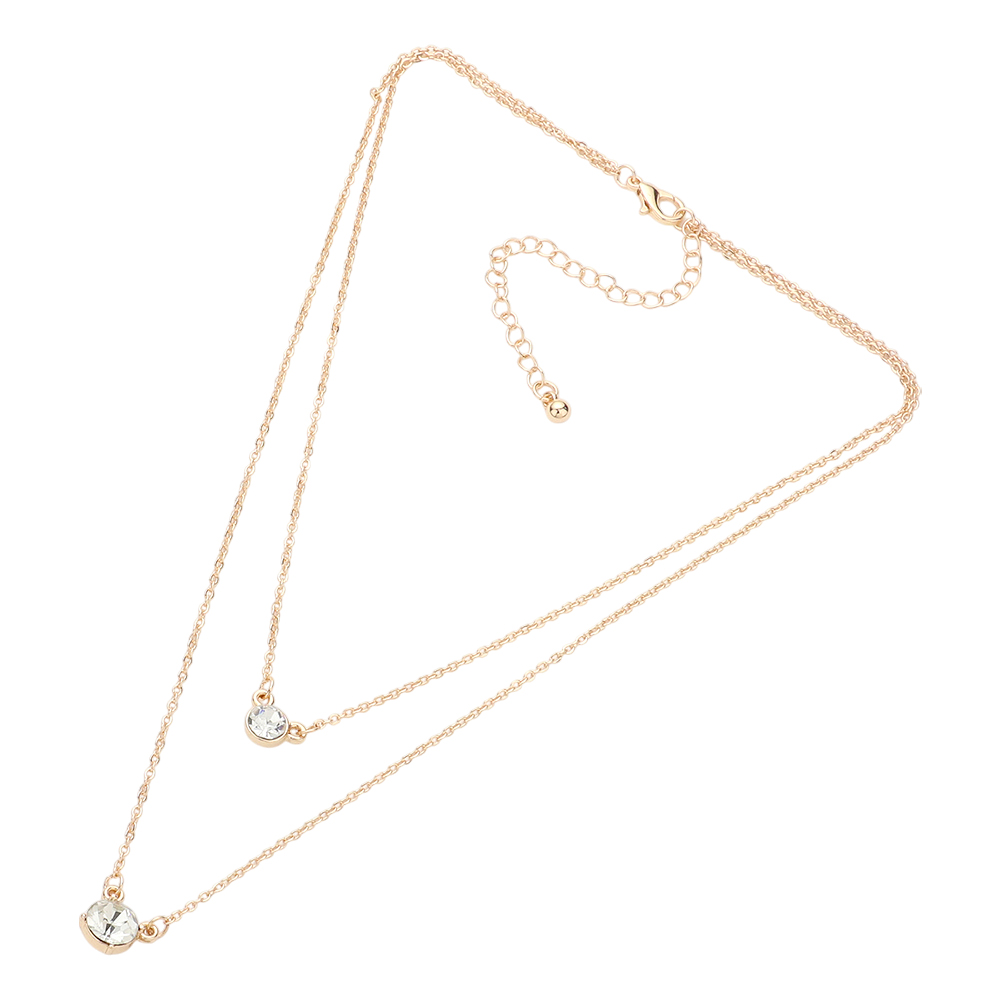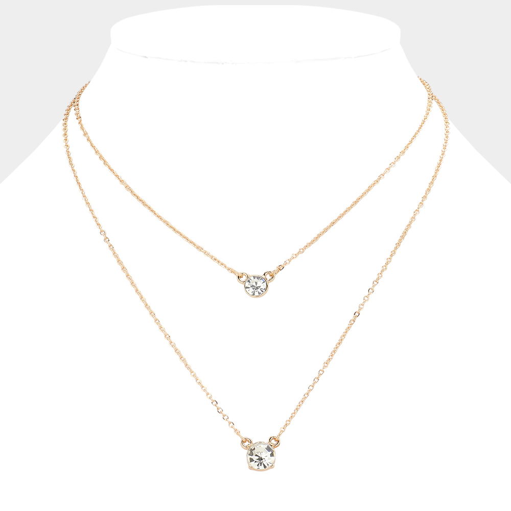 Double Round Stone Pendant Layered Necklace