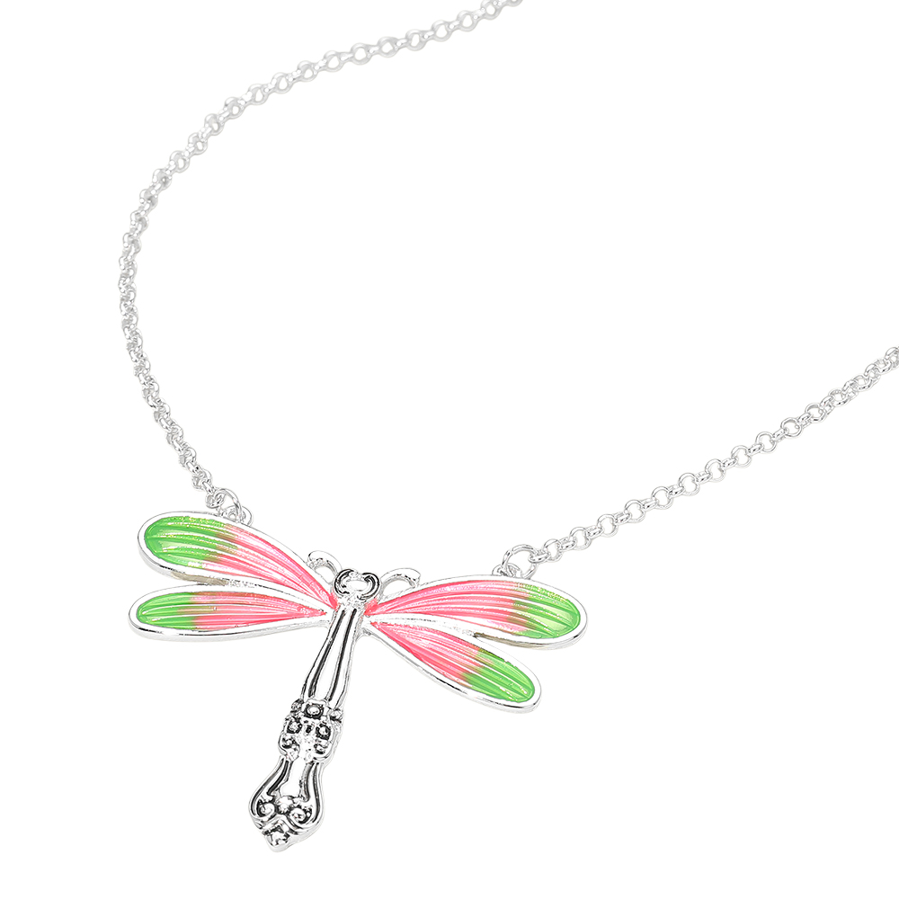 Details • Necklace Size : 20" + 3" L • Pendant Size : 2.25" X 1.75" • This dragonfly pendant chain necklace showcases a delicate insect-inspired charm suspended from a slim chain for a graceful, nature-themed accent. Designed to add light movement and visual interest, it layers easily with other necklaces or stands out on its own, making it a versatile choice for everyday wear, gifting, and boutique jewelry collections. • Lead and Nickel Compliant