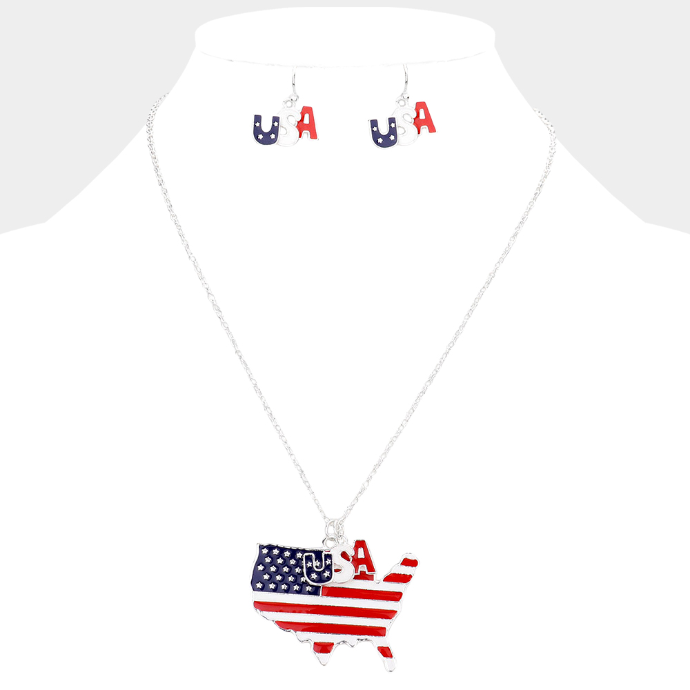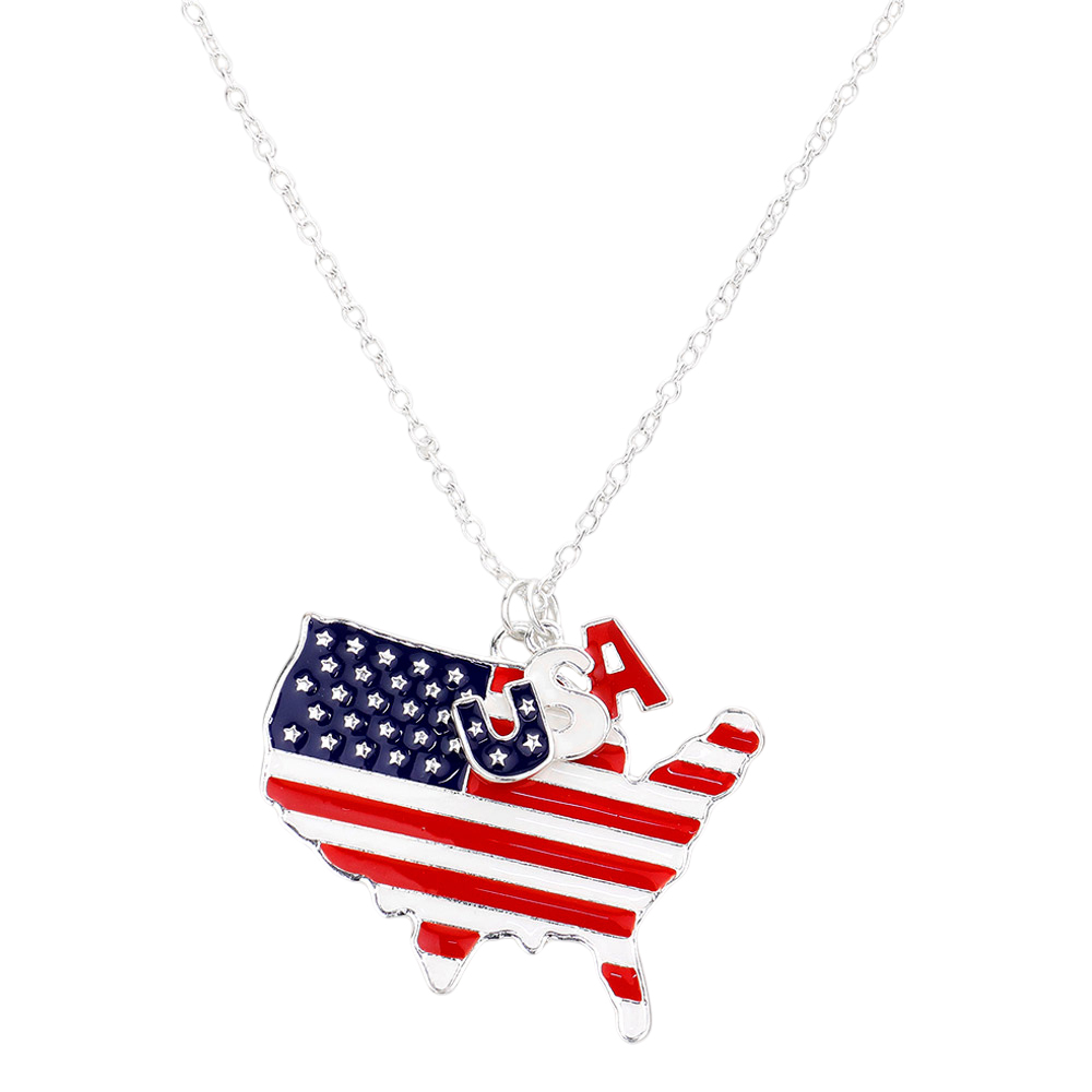American USA Flag Rhinestone Paved Heart Dangle Earrings