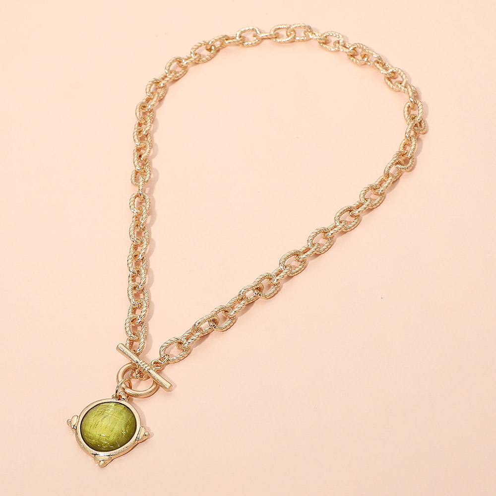 Details • Necklace Size : 18" L • Pendant Size : 1.2" X 1.2" • Elegant chain necklace featuring a round charm with subtle texture and a toggle-style closure. Designed for easy styling, this versatile piece adds a refined statement to casual or elevated looks and layers effortlessly with other necklaces for a modern, curated finish. • Lead and Nickel Compliant
