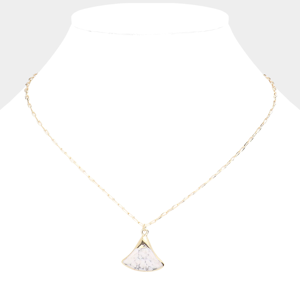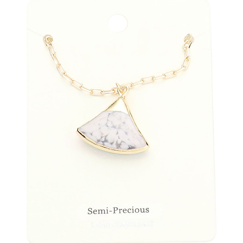 Natural Stone Rhinestone Metal Bar Feather Pendant Double Layered Necklace