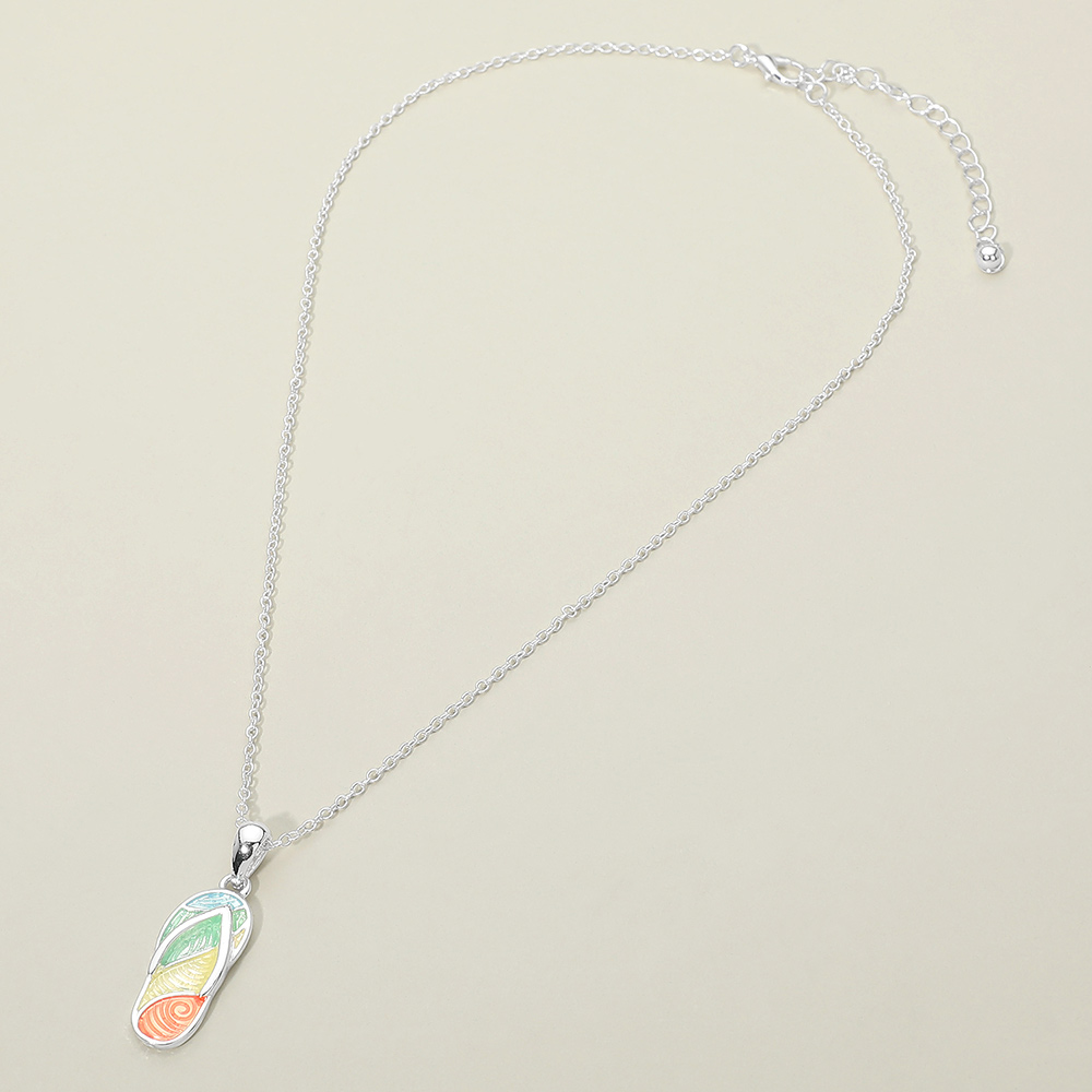 • Flip flop charm pendant necklace designed with a playful, beach-inspired silhouette that captures relaxed summer style. Lightweight and easy to wear for everyday looks or vacation outfits. A cheerful statement piece ideal for gifting, layering, or boutique collections with resort and casual fashion themes.