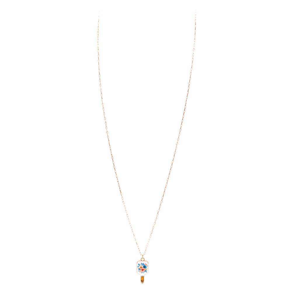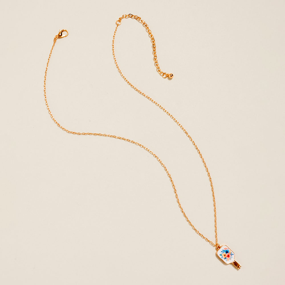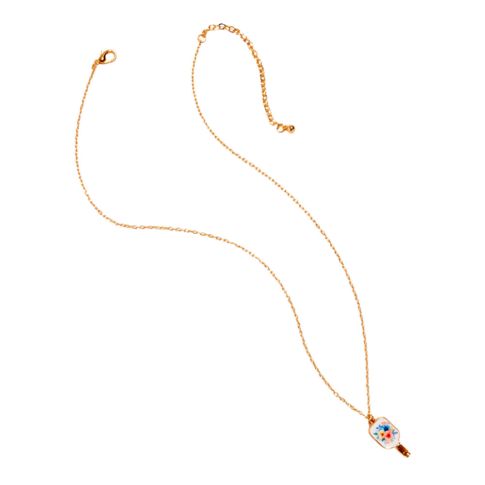 Floral Pickleball Paddle Pendant Necklace
