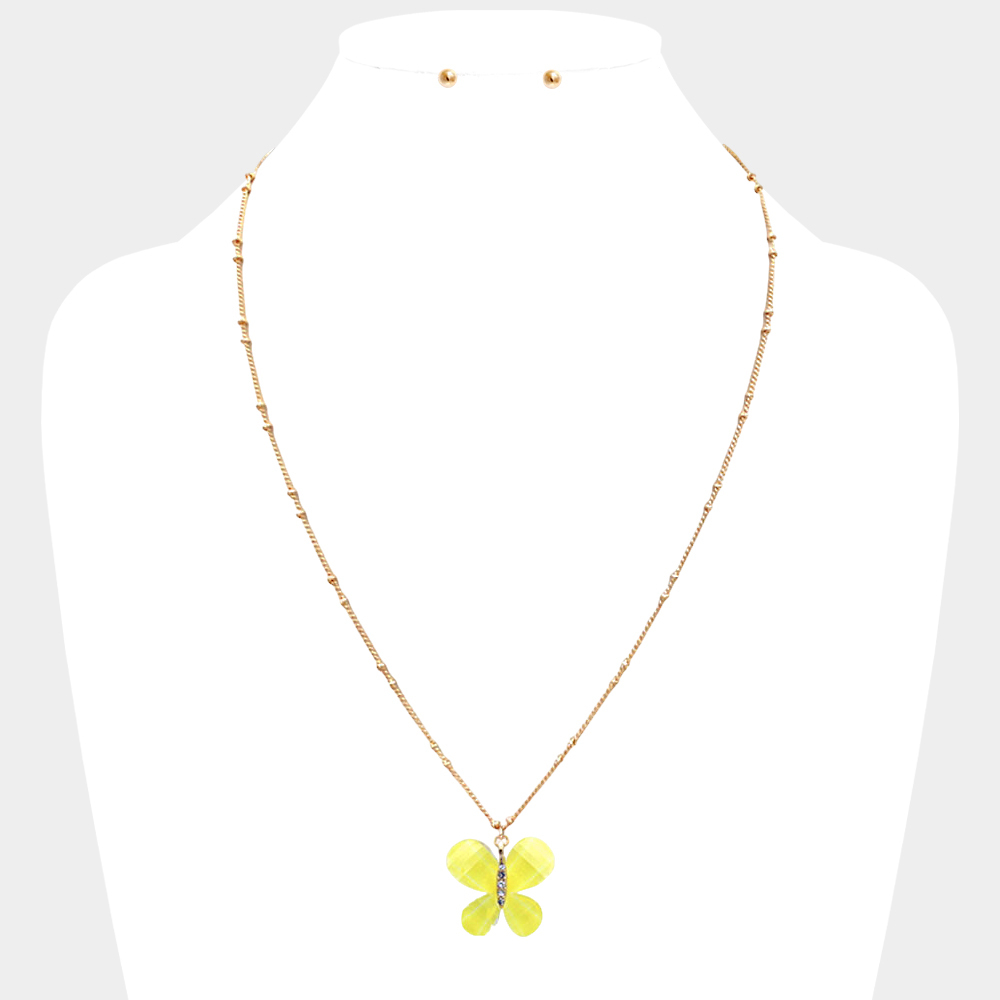 Marquise Stone Accent Antique Metal Butterfly Pendant Necklace