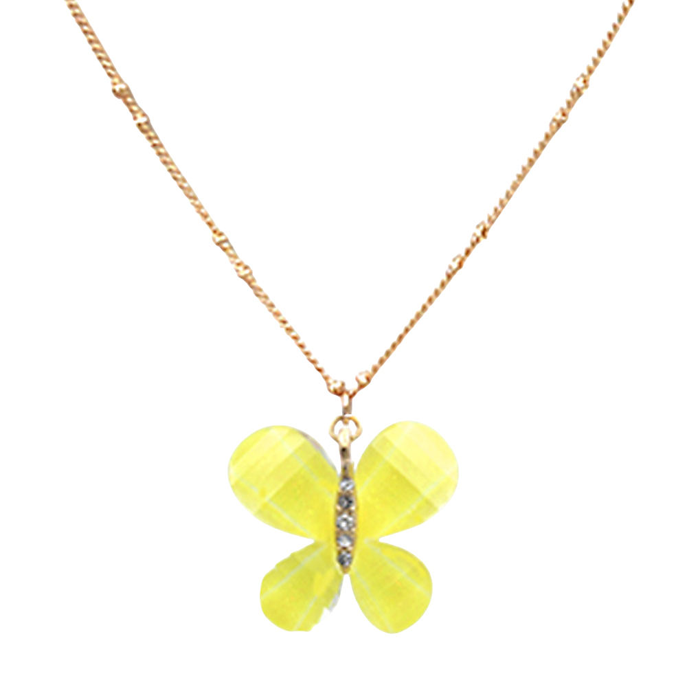 Rhinestone Embellished Butterfly Pendant Accented Tennis Chain Evening Necklace