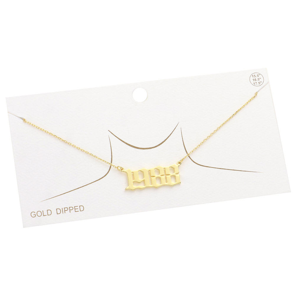 Gold Dipped 1988 Birth Year Plate Pendant Necklace