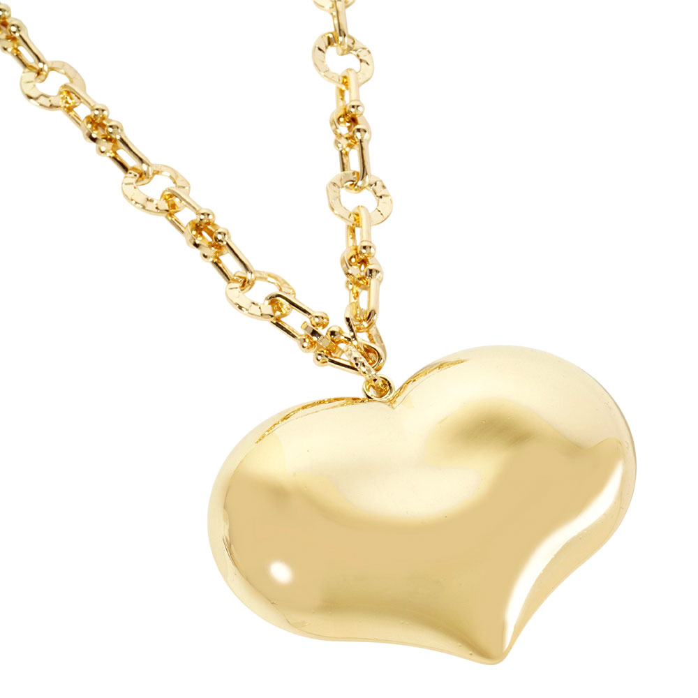 Gold Dipped Bold Puffy Heart Pendant Chunky Chain Necklace