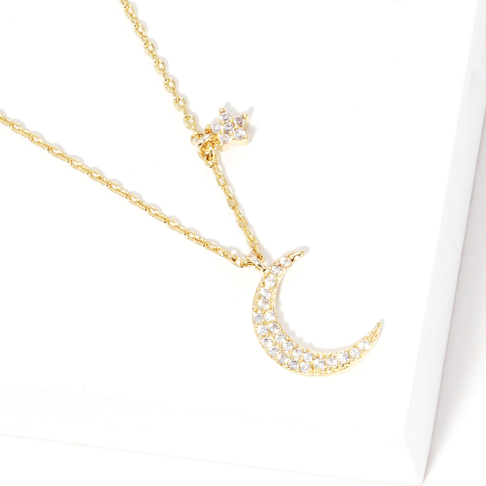 Gold Dipped Cubic Zirconia Moon Star Pendant Necklace