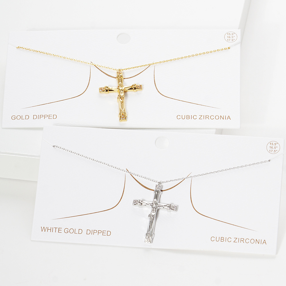 Gold Dipped CZ Embellished Jesus death on the Cross Pendant Necklace