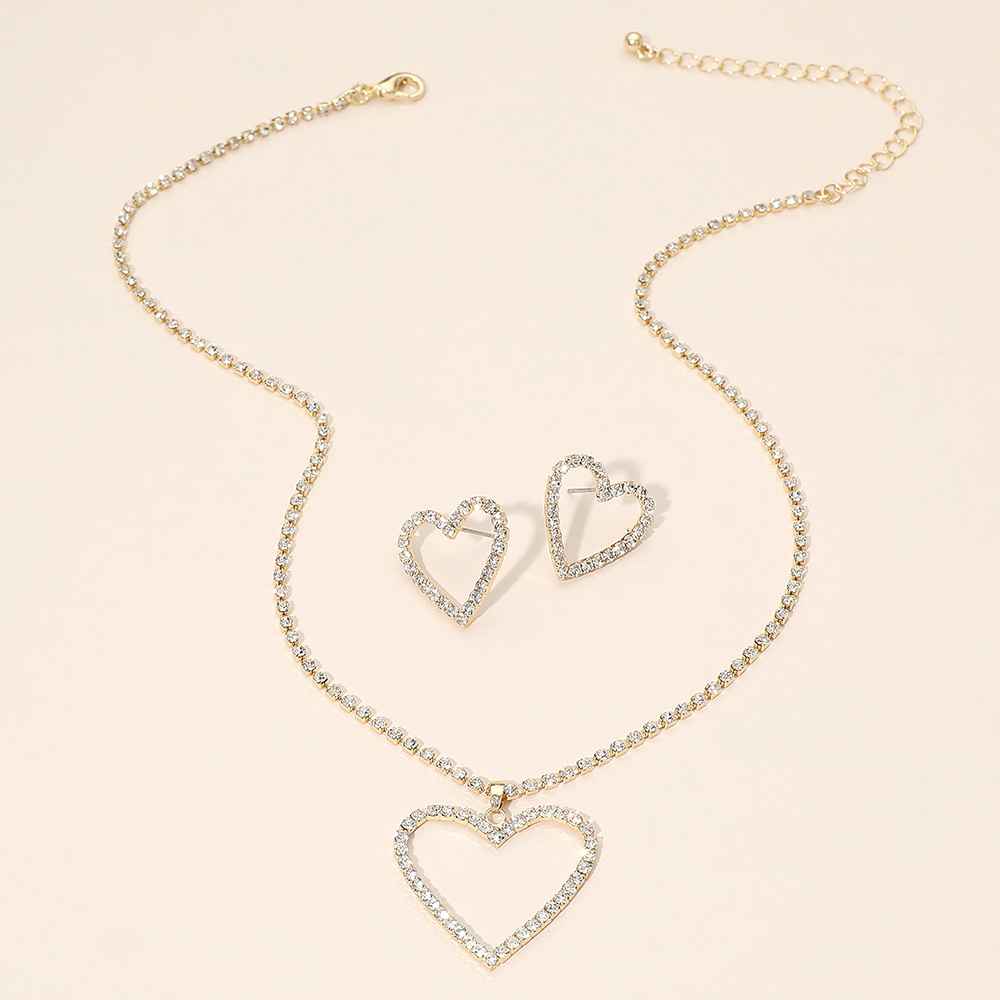 • This elegant jewelry set features a heart shaped pendant necklace paired with matching heart stud earrings for a coordinated, timeless look. Designed to add sparkle and charm to everyday outfits or special occasions, it’s perfect for gifting, Valentine themed collections, or romantic boutique displays. Ideal for layering or wearing as a complete matching set.