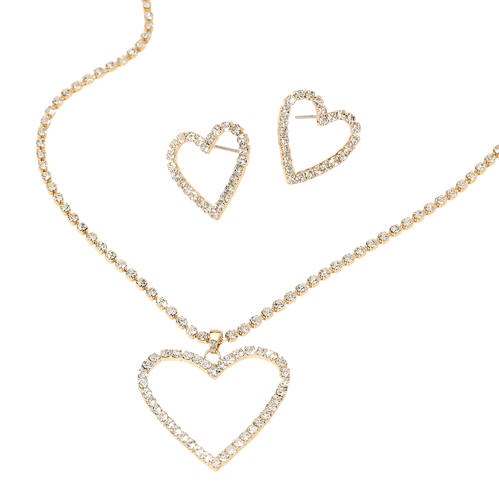 Gold Dipped Rhinestone Pave Open Heart Pendant Necklace Gold Dipped Rhinestone Pave Open Heart Pendant Necklace Gold Dipped Rhinestone Pave Open Heart Pendant Necklace