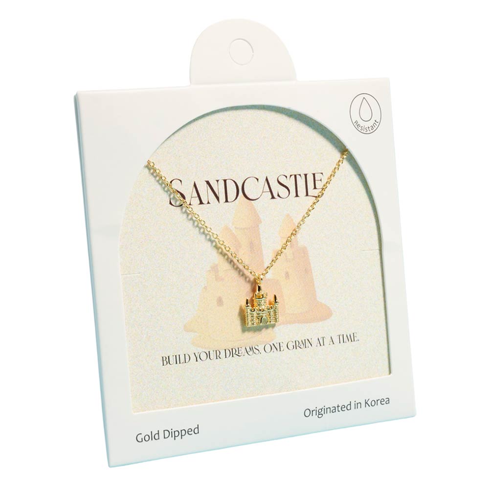Details • Necklace Size : 16" + 2" L • Pendant Size : 0.4" X 0.5" • Sandcastle charm pendant necklace symbolizing dreams, patience, and building something meaningful step by step. A thoughtful everyday accessory designed for layering or solo wear, perfect for gifting, inspirational collections, and beach or travel themed assortments in boutique jewelry displays. • Gold Dipped • Hypoallergenic • Made In Korea