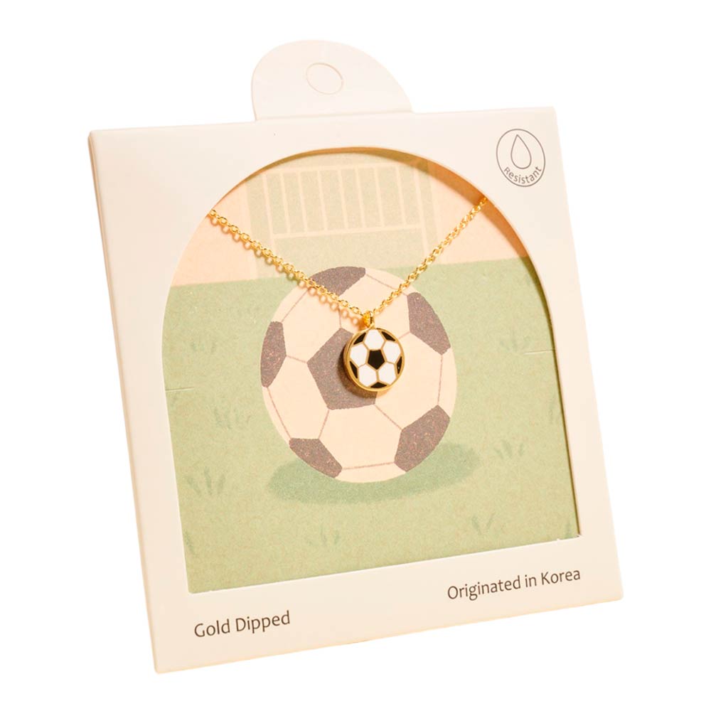 Details • Necklace Size : 16" + 2" L • Pendant Size : 0.4" X 0.5" • Sport-inspired pendant necklace featuring a classic soccer ball motif designed for everyday wear and fan-focused styling. A playful accent for game day outfits, casual layering, and giftable sports jewelry collections. Ideal for boutiques, team spirit displays, and seasonal accessories with athletic charm. • Hypoallergenic • Made In Korea • Gold Dipped