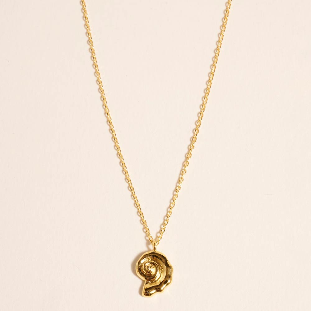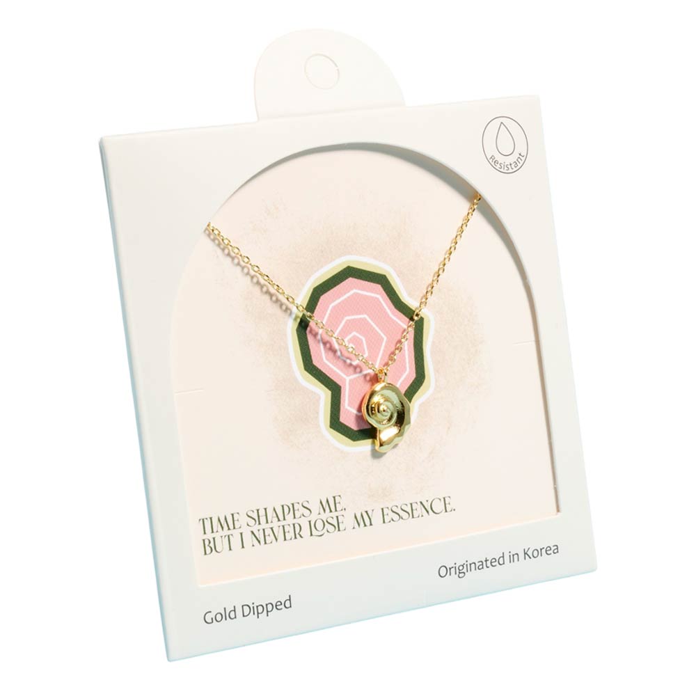 Details • Necklace Size : 16" + 2" L • Pendant Size : 0.4" X 0.6" • Elegant spiral shell pendant necklace symbolizing time, growth, and individuality. Designed for everyday styling and gifting, this delicate necklace pairs easily with casual and elevated looks, making it a versatile addition to boutique jewelry collections, seasonal assortments, and curated displays. • Gold Dipped • Hypoallergenic • Made In Korea