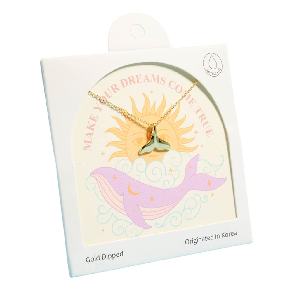 Details • Necklace Size : 16" + 2" L • Pendant Size : 0.6" X 0.5" • Symbolic whale tail pendant necklace inspired by dreams, hope, and positive energy. Designed as a meaningful everyday accessory, this delicate necklace is perfect for gifting, layering, or adding a touch of inspiration to boutique jewelry collections with ocean and celestial themes. • Gold Dipped • Hypoallergenic • Made In Korea